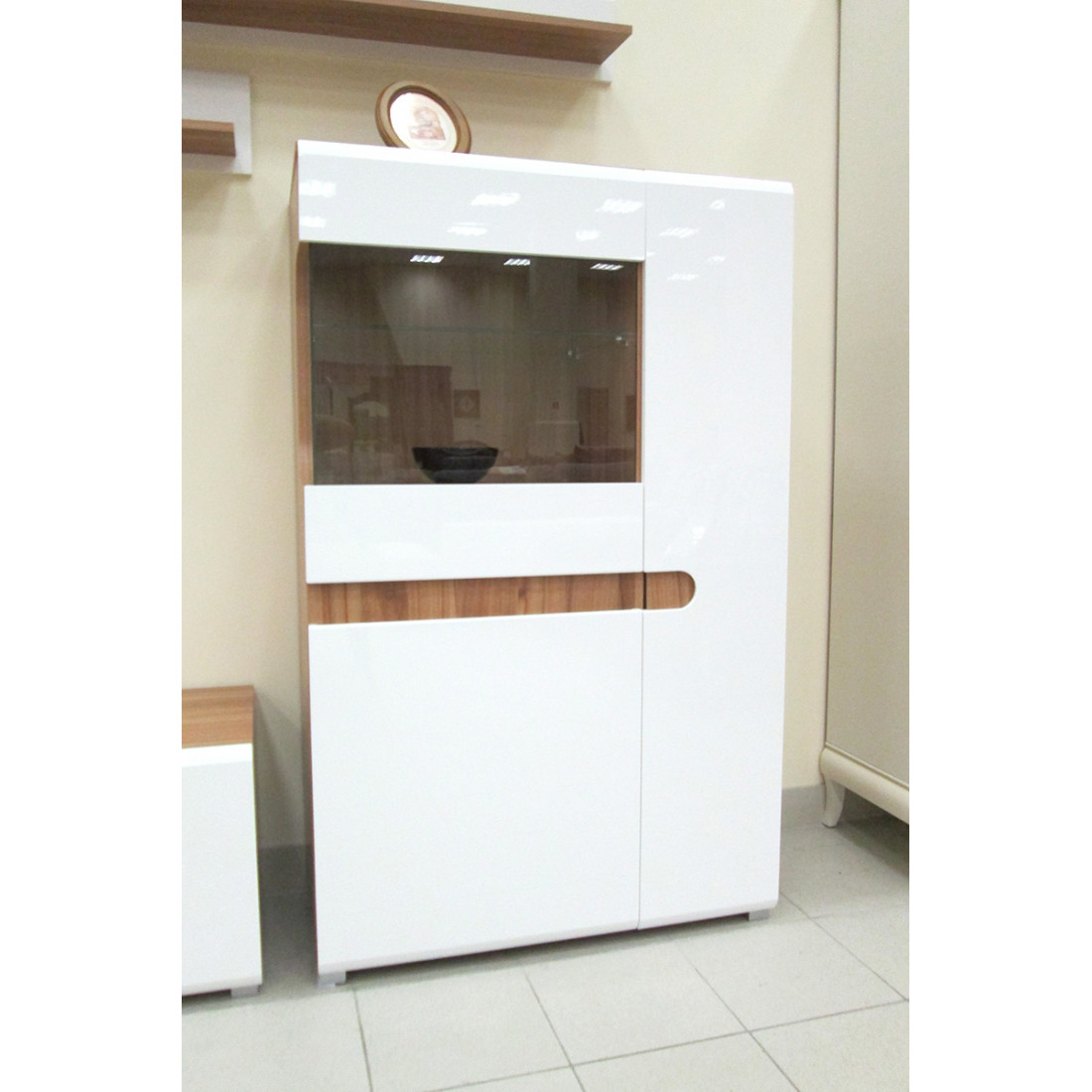 Двухстворчатый шкаф витрина для посуды в гостиную Леонардо МН-026-01/1 белый левый