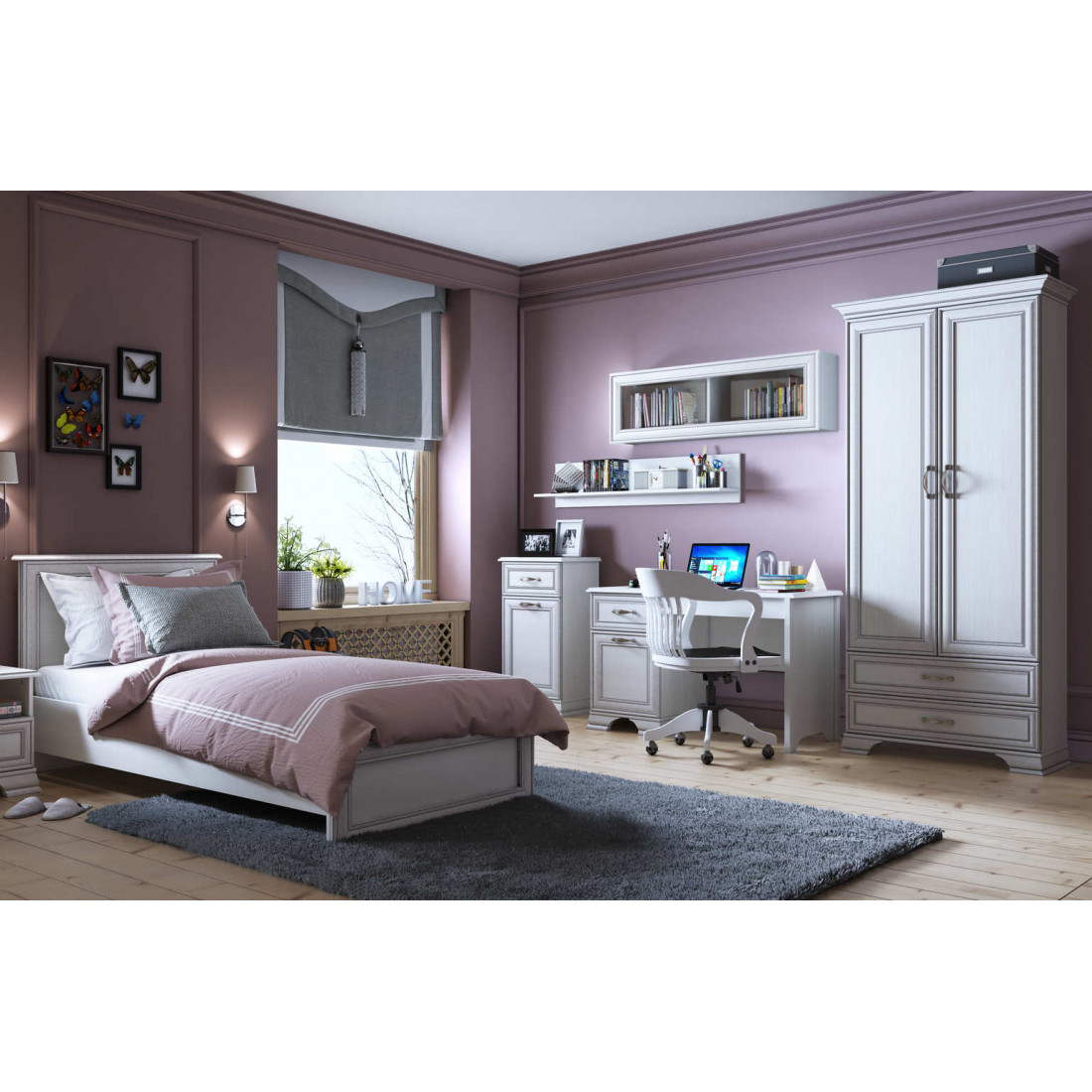 Детская Тиффани - это классика, которая всегда остается модной и стильной. Сочетание светлого оттенка с древесной структурой, нежных фасадов, обрамленных изящными планками с патиной и качественных металлических ручек создадут атмосферу тепла и уюта, а возможность использования подсветки делает эту коллекцию особенно привлекательной. Основное достоинство TIFFANY - эстетическая функциональность, которая роскошно дополнит различный по назначению интерьер.