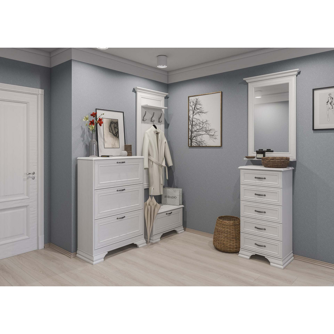 Мебель для прихожей Юнона от фабрики Мебель-Неман композиция 1 - новинка 2019 года в классическом стиле с отделкой структурной фактуры, обрамленная рамочным фасадом, где металлические ручки выгодно подчёркивают стиль и изящество, всегда актуальна и востребована.