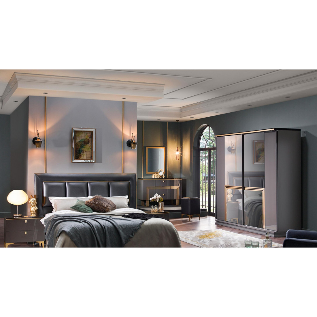 серый антрацит/золотоЗеркало