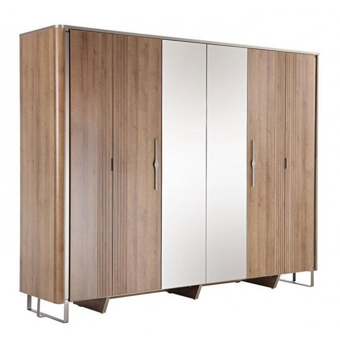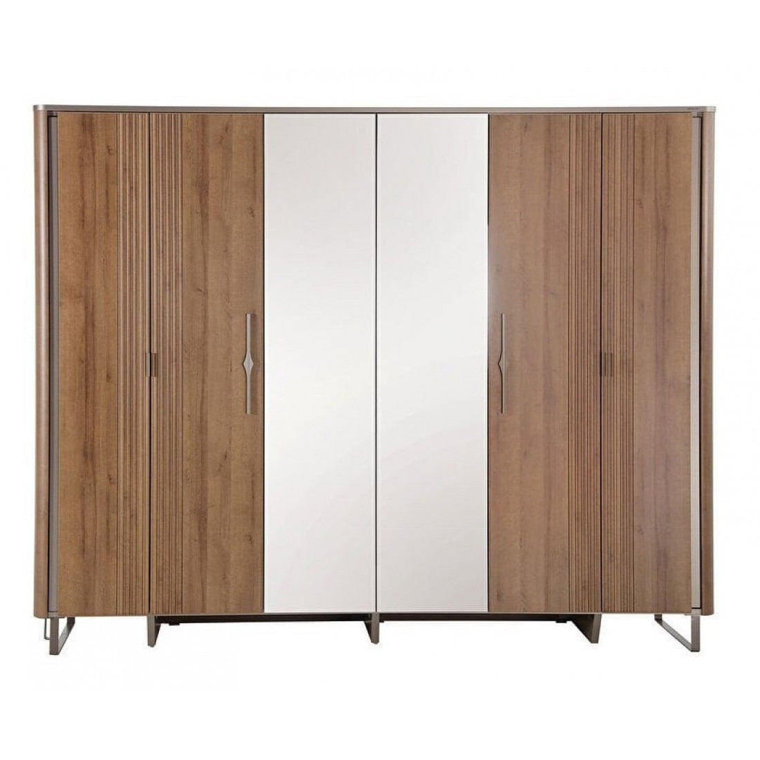 Шкаф 2-х дверный зеркальный Неаполь Ясень анкор светлый (патина "серебро")
