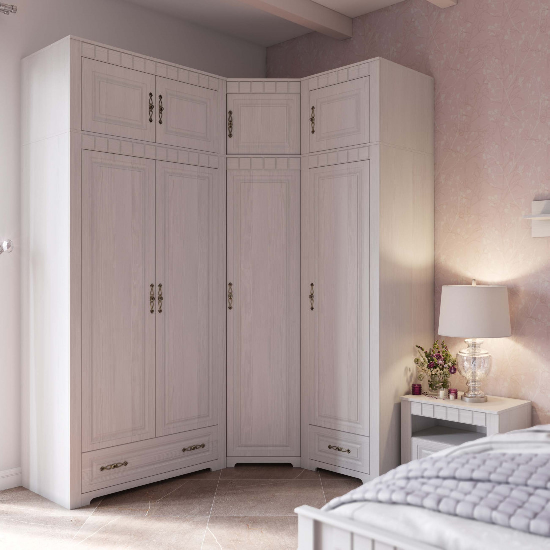 Спальня Прованс от Мебельград - это шарм сельской метности, домашнего уюта, нежные тона и продуманная организация пространства. Изящные декоративные элементы добавят очарования всему интерьеру, внося нотки классики в ваш декор. Располагайте даже объемные спальные принадлежности с удобством во вместительных отделах шкафа и комода.