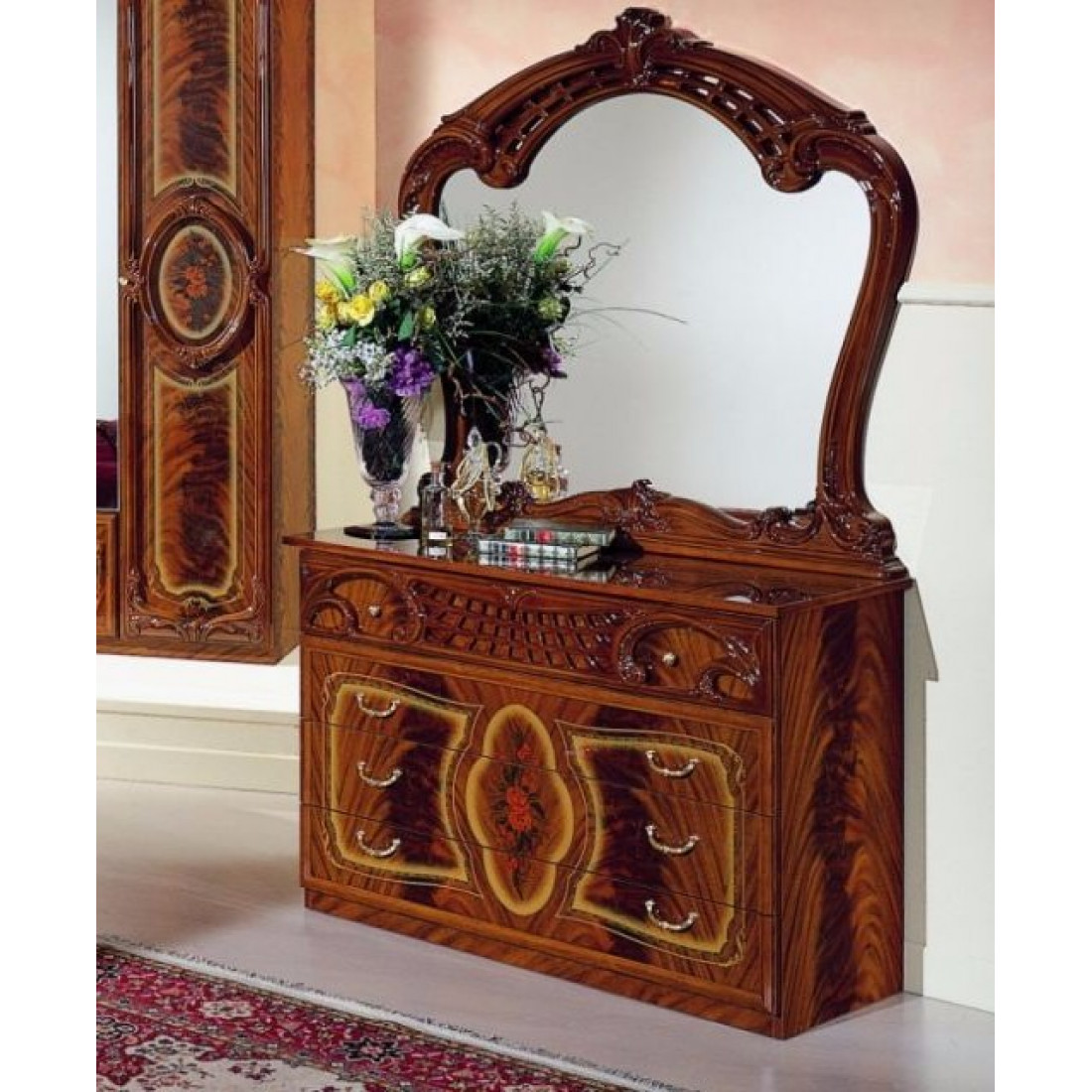 Спальня Роза (орех) от Российской фабрики "ДИА мебель". Выполнена в классическом стиле. Такая спальня коллекции Роза порадует Вас своим дизайном и многофункциональностью. Ореховый цвет в сочетании с глянцевым покрытием и орнаментом на фасадах, придает этой модели еще изысканности и подчеркивает прекрасное чувство стиля своего владельца. Поможет насладиться прекрасным вечером после трудного дня.