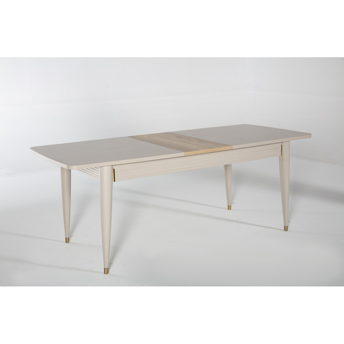 Обеденный раздвижной стол Санвито SANV-14 прямоугольной формы имеет габаритные размеры 1640 мм x 900 мм x 765 мм. В разложенном состоянии длина стола увеличивается до 2040мм. Стол продолжает линейку коллекции Санвито, сочетая в себе кремовый цвет, вертикальные полосы и ненавязчивую золотистую отделку некоторых элементов. Наслаждайтесь красотой и эстетикой SANVITO в любом предмете интерьера.