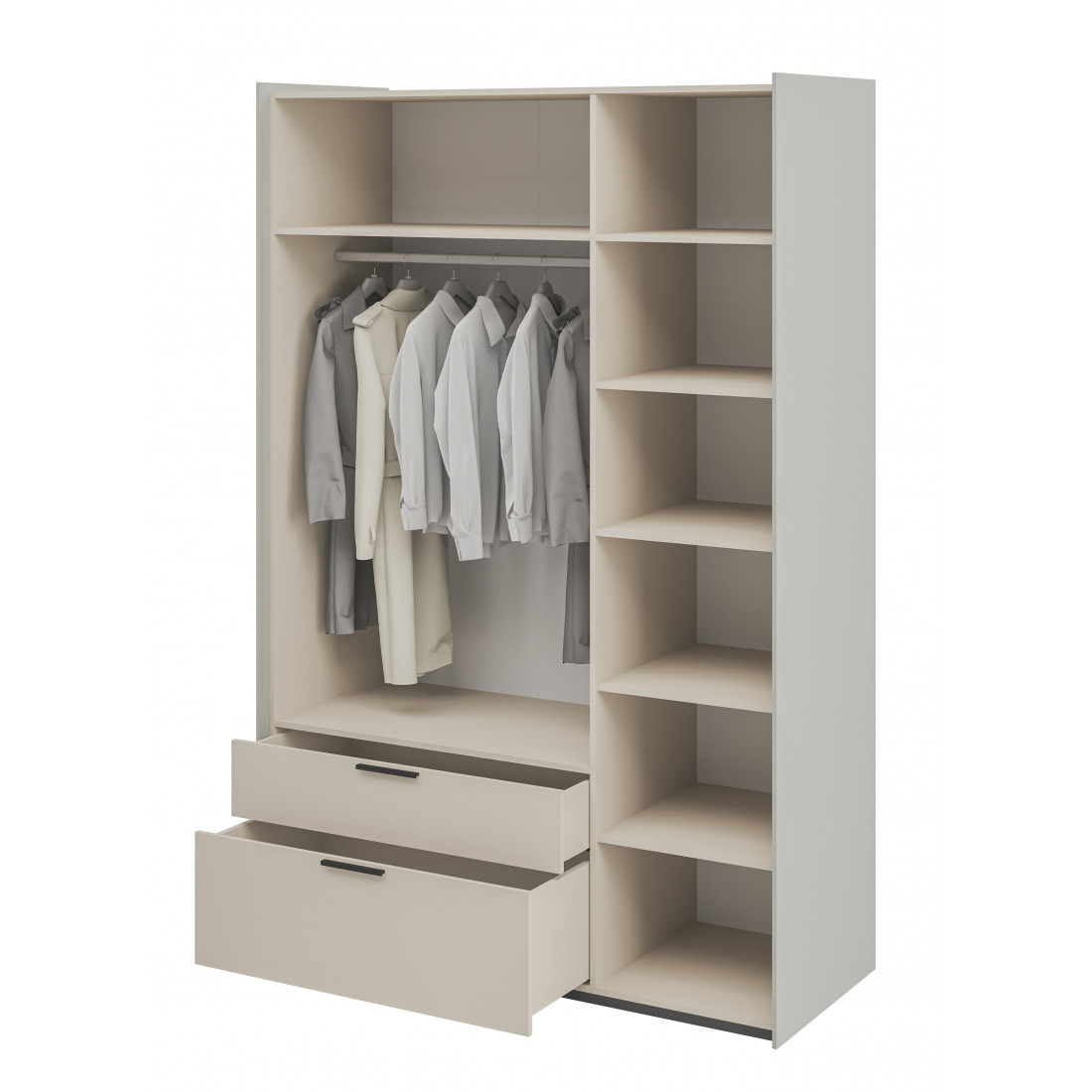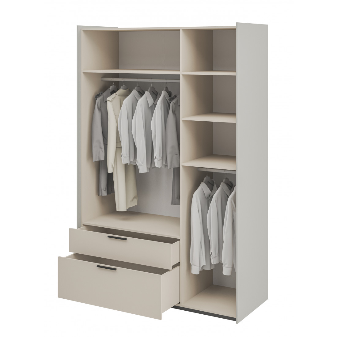 Элегантный шкаф Модена создает изысканную атмосферу в вашей спальни. Предлагается в трех стильных вариантах цветов: Белый-Дуб Элисон, Лунный камень-жемчуг, Металл Бруклин-лунный жемчуг.